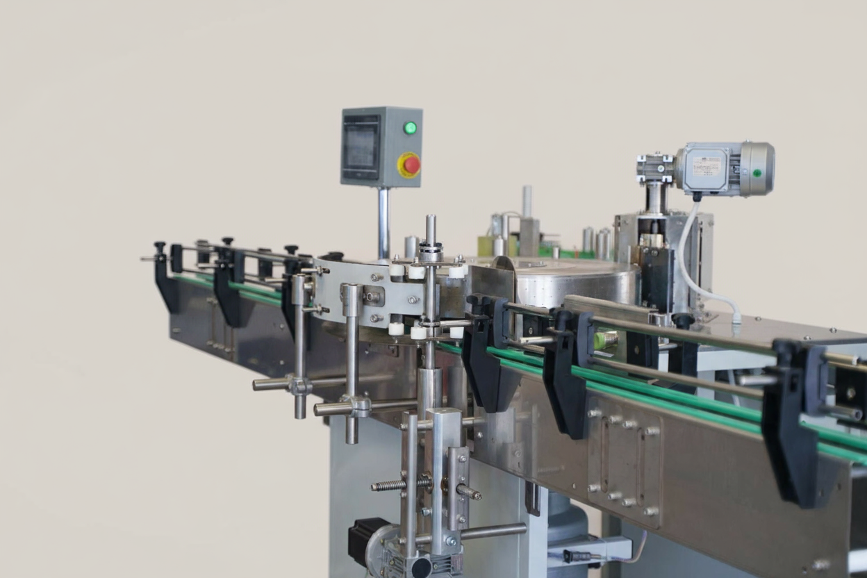 - Регулировки: Узел имеет механические регулировки по осям X и Y, что позволяет быстро адаптировать станок под разный диаметр тары — от небольших флаконов до широких ведер. Это особенно ценно для производств с разнообразным ассортиментом.